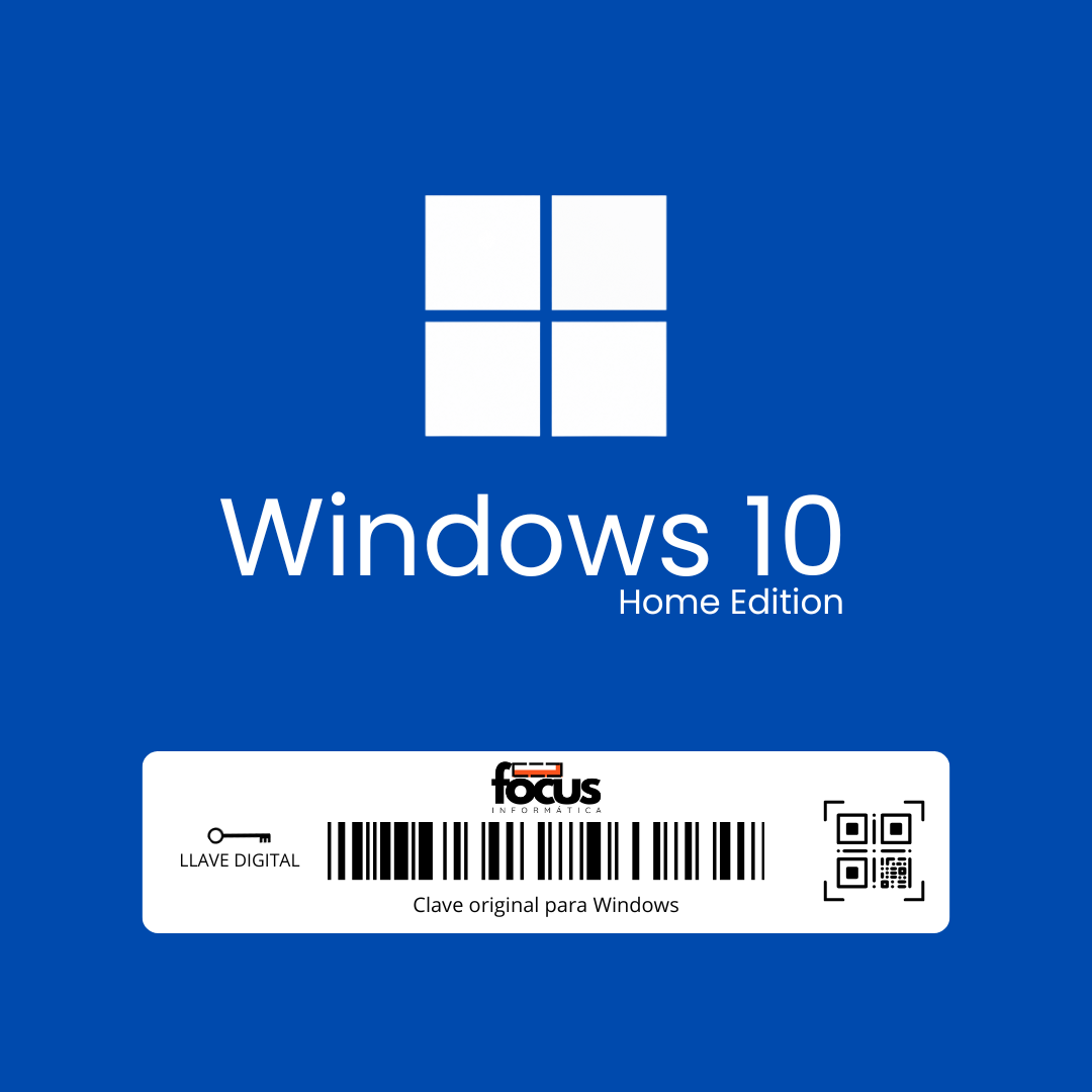 - Clave de activación de Windows 10 Home: Código original y permanente de 25 caracteres.